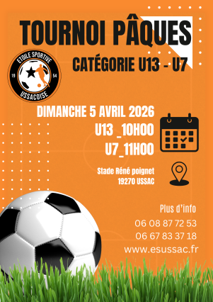 L’ETOILE SPORTIVE USSACOISE organise le Dimanche 5 Avril pour les U7 et les U13 ses traditionnelles Rencontres de Pâques au stade René Poignet à Ussac :